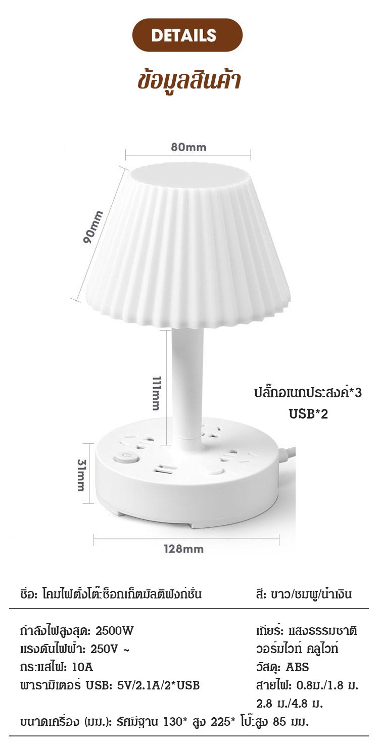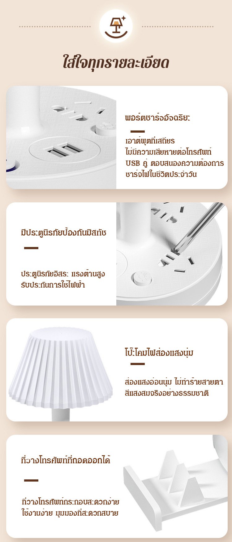 โคมไฟตั้งโต๊ะพร้อมปลั้กไฟ